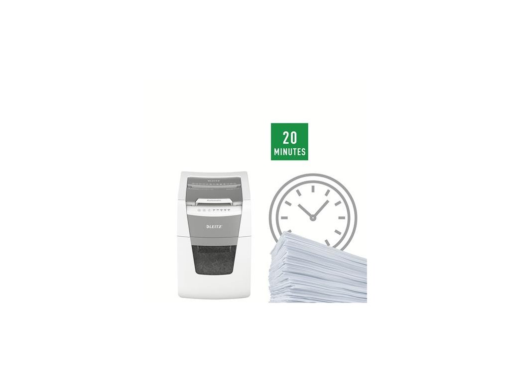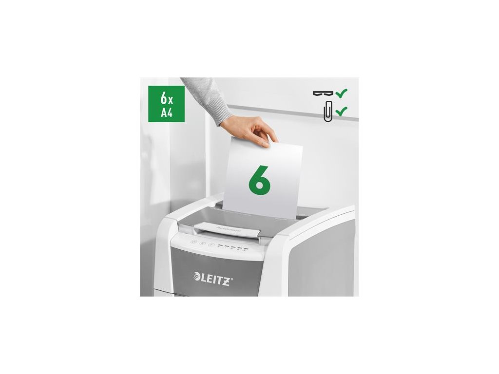 Tichá prevádzka - pre pokojnú prácu -automatické dávkovanie: max. 100 listov A4 -manuálny otvor na podávanie listov: max. Pre 6 listov (80 g / m2) -Jedinečná funkcia čistého vyprázdňovania (rezačka sa otáča po každom použití), ktorá zabráni tomu, aby papierový odpad počas vyprázdňovania padal za odpadovú nádobu. -infračervený senzor nasýtenia nádrže Signál -80% nasýtenia varuje pred včasným vyprázdnením odpadovej nádoby -Extrémne tichý pre pokojné pracovné prostredie (s pravidelným používaním olejových platní Leitz) - technológia pre bezproblémové zničenie dokumentov (automatické zastavenie a výstup papiera pri vložení príliš veľkého množstva papiera) - nepretržitá prevádzková doba 20 minút umožňuje zničiť celý obsah vstupného zásobníka naraz -ECO režim je aktivovaný 3 minúty po použití -DIN P5 úroveň zabezpečenia mikrokonetami (2x15 mm) Výsuvná nádoba na odpad -34L, ktorá umožňuje zlikvidovať celý obsah vstupného zásobníka naraz -Dotykové ovládanie pre jednoduché a intuitívne použitie ničí aj bankové karty, sponky a spinky rozmery: 365 (š) x 530 (m) x 430 (m) mm -2 + 1-ročná záruka (aj na rezacie nože) - zaregistrujte sa na ďalšiu 1-ročnú záruku Značka: LEITZ Výrobca: Esselte Kft. Adresa: 1139 Budapest, Lomb u. 37-39. A ép. II. 8., Hungary Web: https://www.accobrands.com/brands/ Email: hungarymarketing@acco.comDodatočné parametre