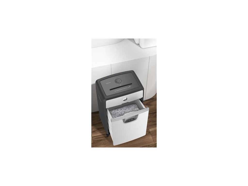 Skartovací stroj pre malú a domácu kanceláriu, pre 3-5 užívateľov. - oblasť používania: malá a domáca kancelária - úroveň bezpečnosti (papier): DIN P-5 - úroveň bezpečnosti (kreditná karta): DIN T-5 - typ rezu: papier - konfety (2x15 mm) - dávkovanie: 16 listov / 80 g papiera - šírka zásobníka na papier: 220 mm - rýchlosť skartovania: 1,6 m (metre) / min - objem zbernej nádrže na odpad: 30 litrov - skartuje: sponky, kreditné karty, spinky - nepretržitá prevádzková doba: 40 minút - čas odpočinku: 50 minút - hlučnosť: 55 dBA - rozmery produktu, hmotnosť: 645 x 424 x 295 mm , 18,4 kg - záruka: 2 roky (zariadenie), 5 rokov (rezacie nože) Značka: HP Výrobca: HP Adresa: HP REG 23010, 08028 Barcelona, Spain Web: https://www.hp.com/hu-hu/home.html Email: reg@hp.comDodatočné parametre