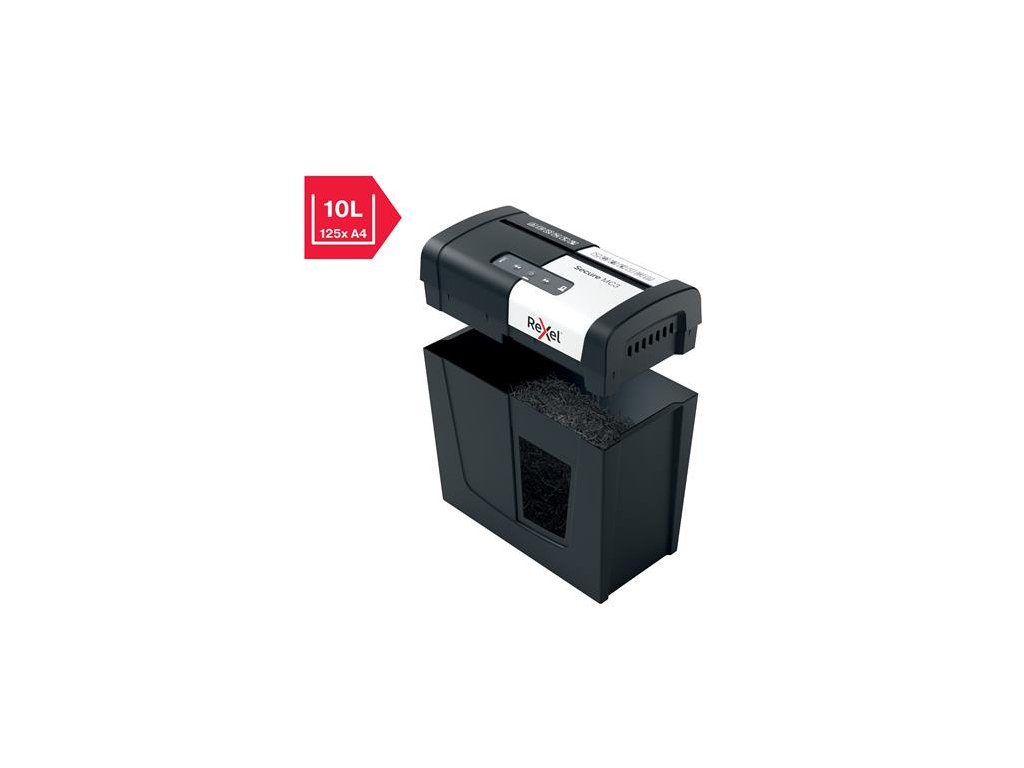 skartovací stroj, na domáce použitie ideálne na zničenie osobných alebo kacelárskych dôverných dokumentov skartuje na mikrokonfety úroveň bezpečnosti: P-5 DIN kapacita listov: 3 ks Al listov (80 g/m2) objem na odpad: 10 l (125 ks A4 listov) skartuje sponky aj spinky dotykové tlačidlo ovláda automatickú alebo manuálnu fuknciu späť/naspäť nepetržitá prevádzková doba: 6 minút LED svetlo varuje na príliiž veľa listov na vloženie nízka úroveň hluku vďaka Whisper-Shred ™ technológií: <60dB 2 ročná záruka na zariadenie 2 ročná záruka na sekáč Značka: REXEL Výrobca: Esselte Kft. Adresa: 1139 Budapest, Lomb u. 37-39. A ép. II. 8., Hungary Web: https://www.accobrands.com/brands/ Email: hungarymarketing@acco.comDodatočné parametre