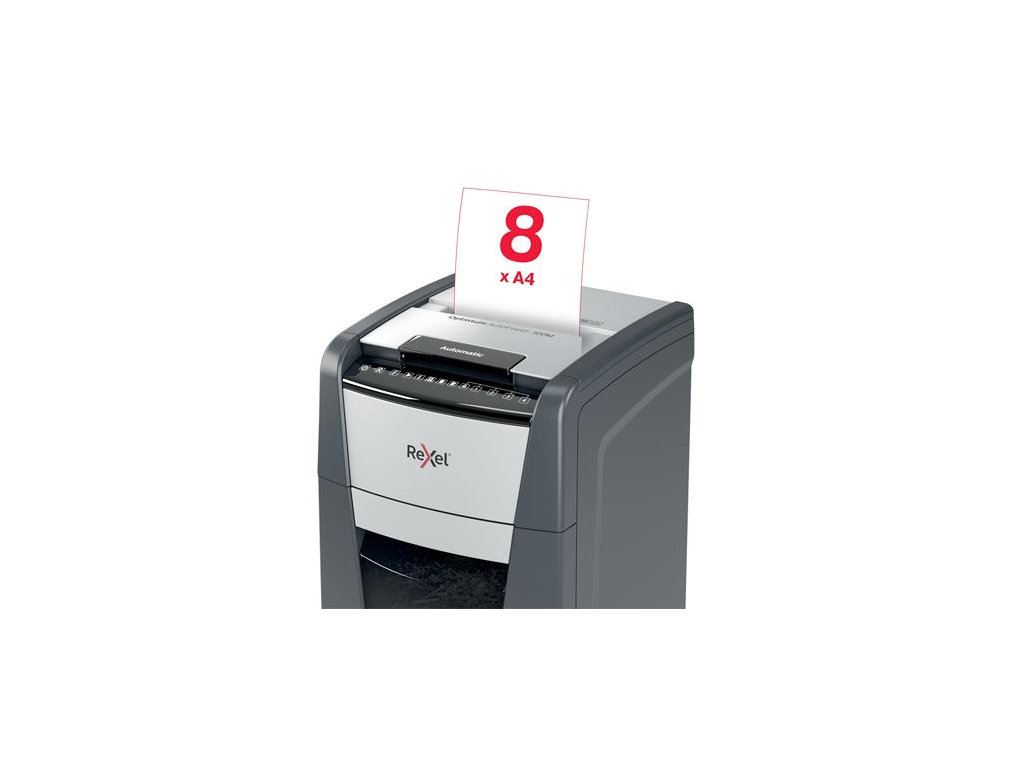 Skartovací stroj, mikrokonfety, 300 listov, REXEL, "Optimum AutoFeed+ 300M"