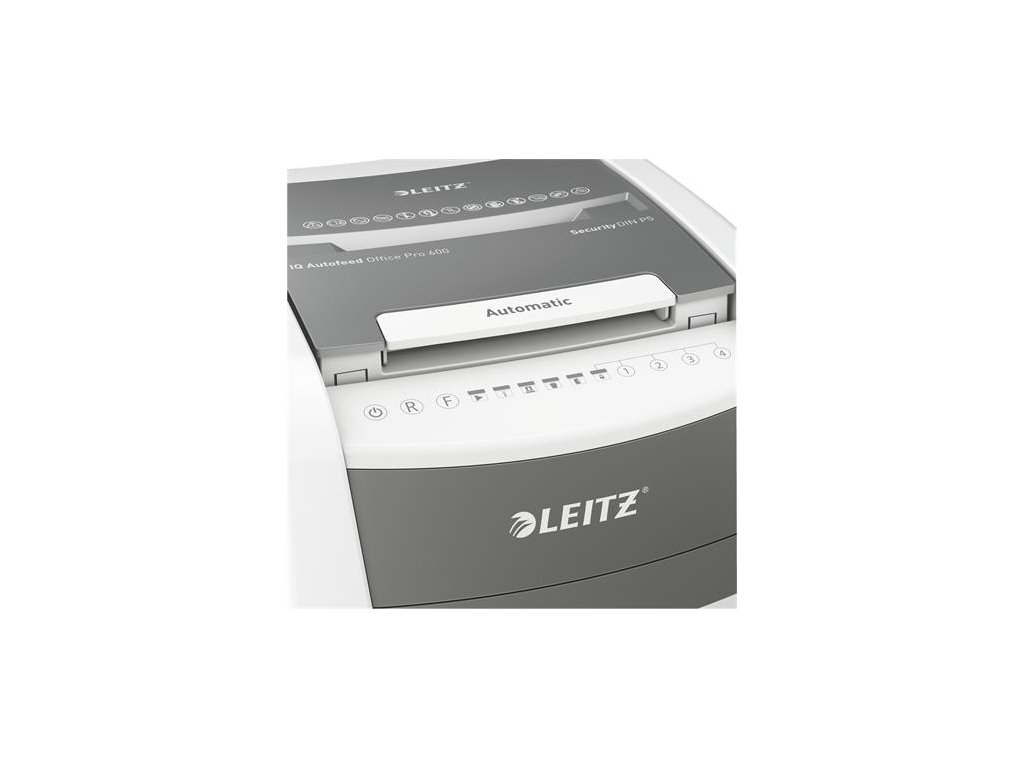Skartovací stroj, mikrokonfety, 600 listov, LEITZ "IQ AutoFeed Office 600 P5"