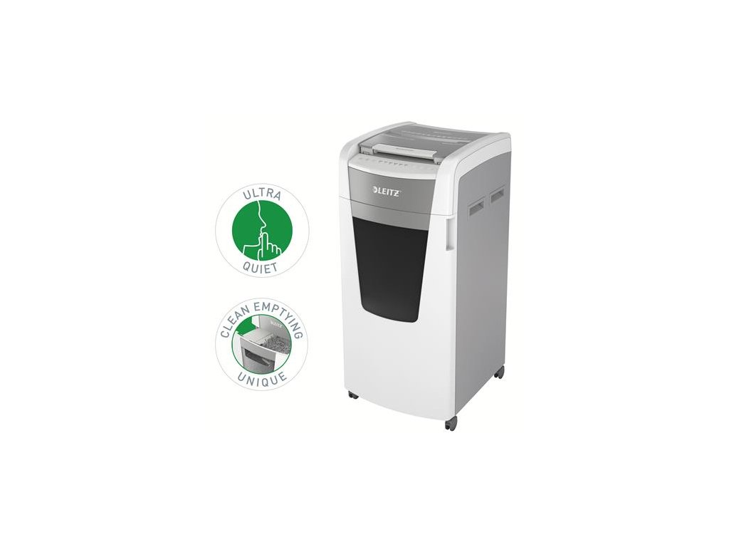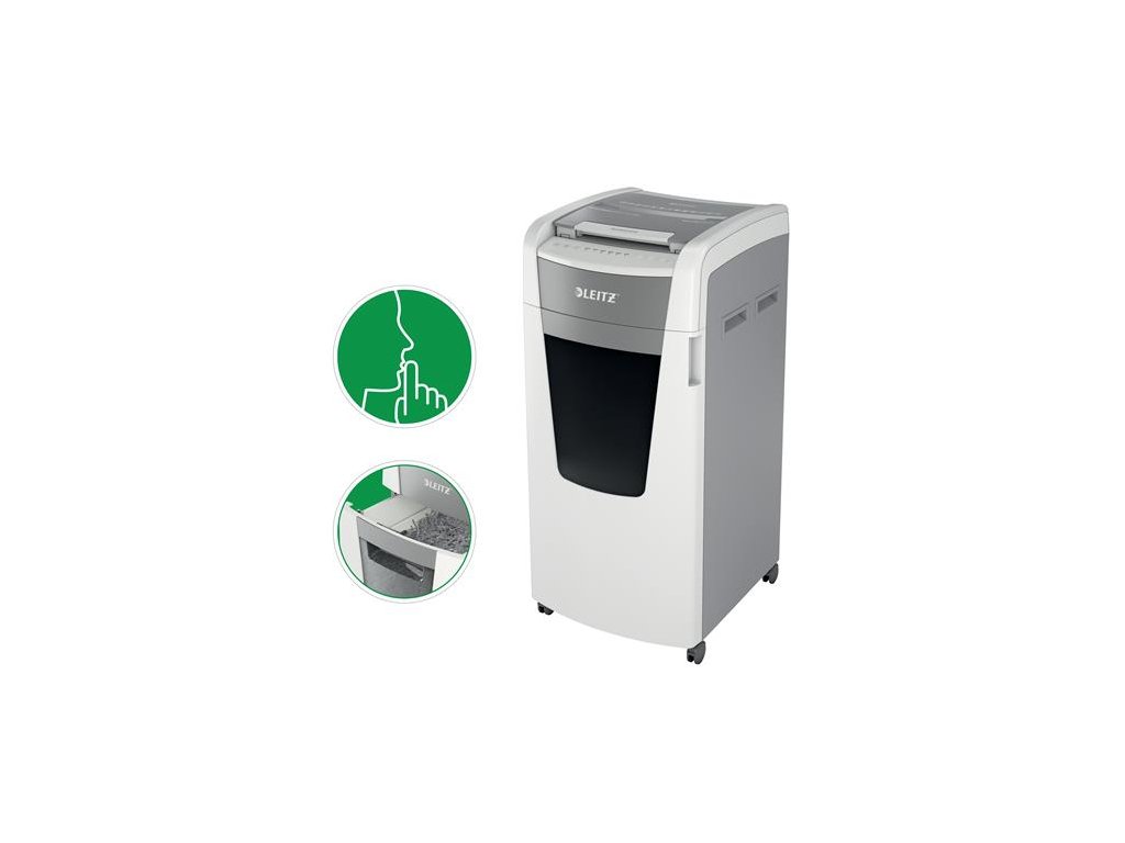 Tichá prevádzka - pre pokojnú prácu -automatické dávkovanie: max. 600 listov A4 otvor pre manuálne podávanie: max. Na 10 listov (80 g / m2) -Jedinečná funkcia čistého vyprázdňovania (rezací nôž sa otáča po každom použití), ktorá zabráni tomu, aby papierový odpad počas vyprázdňovania padal za odpadovú nádobu. -infračervený senzor nasýtenia nádrže Signál -80% nasýtenia varuje pred včasným vyprázdnením odpadovej nádoby -Extrémne tichý chod pre pokojné pracovné prostredie (s pravidelným používaním olejových platní Leitz) - technológia bez výživy pre bezproblémové zničenie dokumentov (automatické zastavenie a výstup papiera pri vložení príliš veľkého množstva papiera) - nepretržitá prevádzková doba 240 minút umožňuje zničiť celý obsah vstupného zásobníka naraz -ECO režim je aktivovaný 3 minúty po použití -DIN P5 úroveň zabezpečenia mikrokonetami (2x15 mm) - dizajn bez okien, ktorý skrýva papierový odpad z pohľadu -110L odpadkový kôš, ktorý umožňuje zničenie celého obsahu podávača papiera naraz -PIN kódom uzamknutý dotykový ovládací panel pre maximálnu spoľahlivosť a bezpečnosť ničí aj bankové karty, sponky a spinky -jednoduchý pohyb vďaka vysoko kvalitným kolesám rozmery: 510 (š) x 960 (mm) x 570 (mm) mm -2 + 1-ročná záruka (aj na rezacie nože) - zaregistrujte sa na ďalšiu 1-ročnú záruku Značka: LEITZ Výrobca: Esselte Kft. Adresa: 1139 Budapest, Lomb u. 37-39. A ép. II. 8., Hungary Web: https://www.accobrands.com/brands/ Email: hungarymarketing@acco.comDodatočné parametre