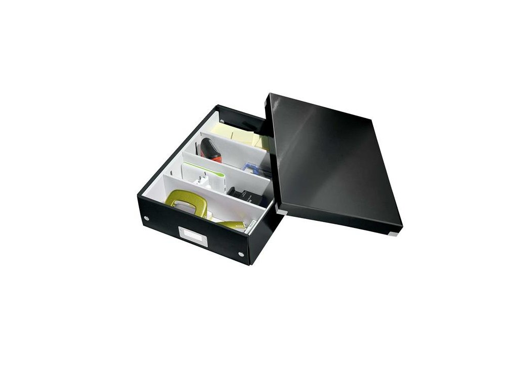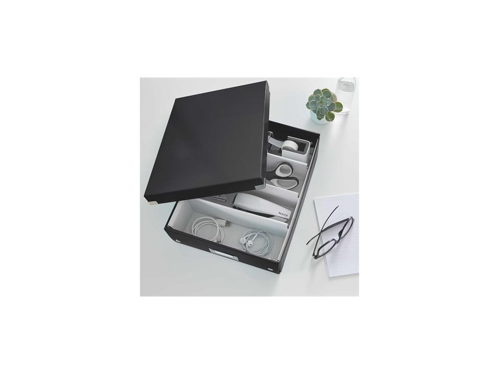 - lesklé PP vyhotovenie vytvára prvotriedny vzhľad škatule a umožňuje dlhodobé používanie a jednoduché utieranie prachu - rozmery: 280 x 100 x 370 mm - atraktívna a štýlová škatuľa na uloženie a organizáciu nabíjačiek, káblov, kancelárskych potrieb a ďalších predmetov - na vylepšenie usporiadania obsahu škatule použite priložený vnútorný systém priehradiek - škatuľu môžete rozdeliť na 2 alebo 3 časti a zabrániť tak zamotaniu káblov alebo miešaniu fotiek a ďalších drobností - kvalitné kovové rámčeky s kontrastnými bielymi štítkami na jednoduché rozpoznanie obsahu škatule - skladacia kvôli úspore miesta, ak sa nepoužíva - vyrobená z pevného vysokokvalitného kartónu Značka: LEITZ Výrobca: Esselte Kft. Adresa: 1139 Budapest, Lomb u. 37-39. A ép. II. 8., Hungary Web: https://www.accobrands.com/brands/ Email: hungarymarketing@acco.comDodatočné parametre