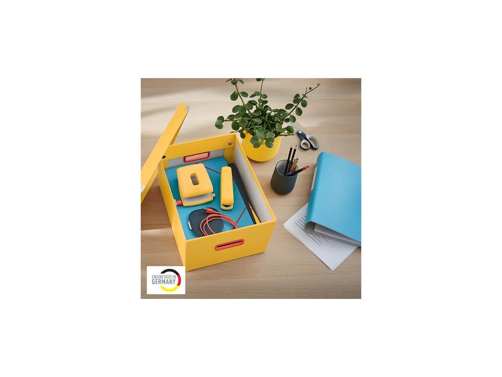 Vhodná na ukladanie dokumentov až do veľkosti A3 alebo iných väčších predmetov Je ideálna na ukladanie alebo prenášanie vybavenia domácej kancelárie alebo na hot-desking v kancelárii Odnímateľné veko uchováva obsah v bezpečí a ukrytý pred zvedavými pohľadmi Rýchle a jednoduché skladanie/rozkladanie pomocou spínačiek Ak sa nepoužíva, dá sa úplne zložiť a tak ušetriť miesto Obsahuje štýlové červené otvory na pohodlné uchopenie pri zdvíhaní a prenášaní Patentovaná konštrukcia zaručuje väčšiu ochranu pred náhodným rozložením škatule pri prenášaní ťažkých predmetov Vyrobené z pevného vysokokvalitného kartónu pre dlhú životnosť, čistá, polomatná PP povrchová úprava Balenie bez plastov Kolekcia Leitz Cosy kombinuje komfort domáceho pohodlia s prvotriednou kvalitou a vytvára tak pozitívne a produktívne pracovné prostredie Značka: LEITZ Výrobca: Esselte Kft. Adresa: 1139 Budapest, Lomb u. 37-39. A ép. II. 8., Hungary Web: https://www.accobrands.com/brands/ Email: hungarymarketing@acco.comDodatočné parametre
