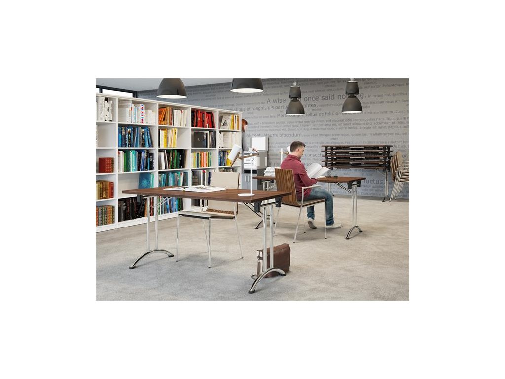 skladací konferenčný stôl, skladacie chrómové nohy rozmer: 65x130 cm výška: 73 cm hrúbka dosky: 25 mm farba: jaseňDodatočné parametre