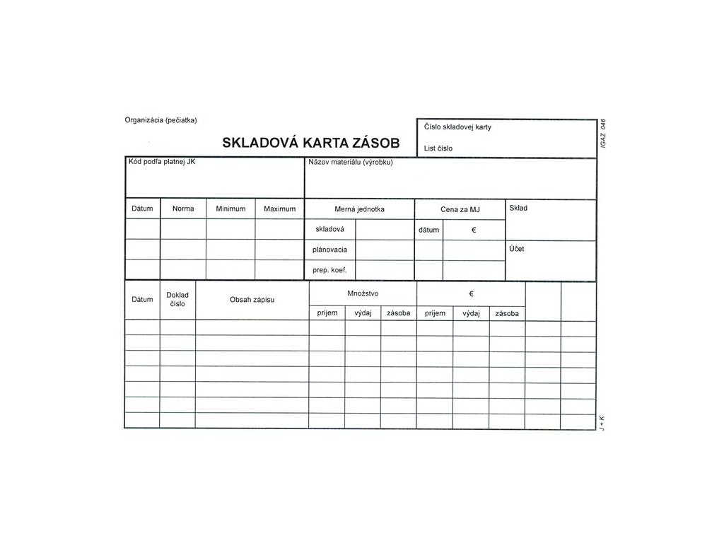 Skladová karta zásob A5-typ C