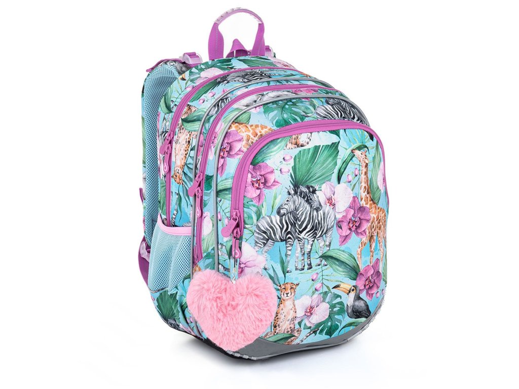 Model ELLY váži menej ako jeden kilogram, takže je ideálny pre dievčatá od prvej do štvrtej triedy základnej školy, ktoré milujú rozkvitnuté safari plné žiráf, zebier, gepardov a tukanov.