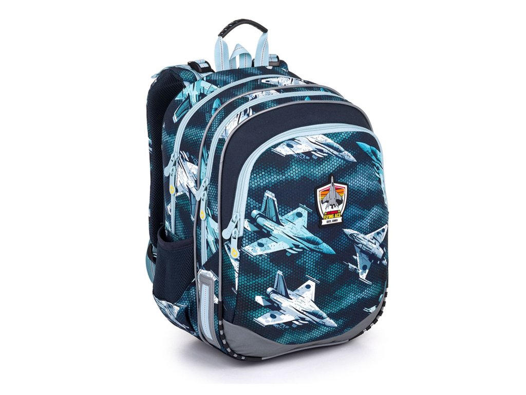 Taška má dve objemné hlavné komory. Zadná komora je priestrannejšia a spoľahlivo pojme všetko učivo. Predná komora je o niečo užšia a je v nej umiestnené ešte malé sieťované vrecko na zips a menovka.