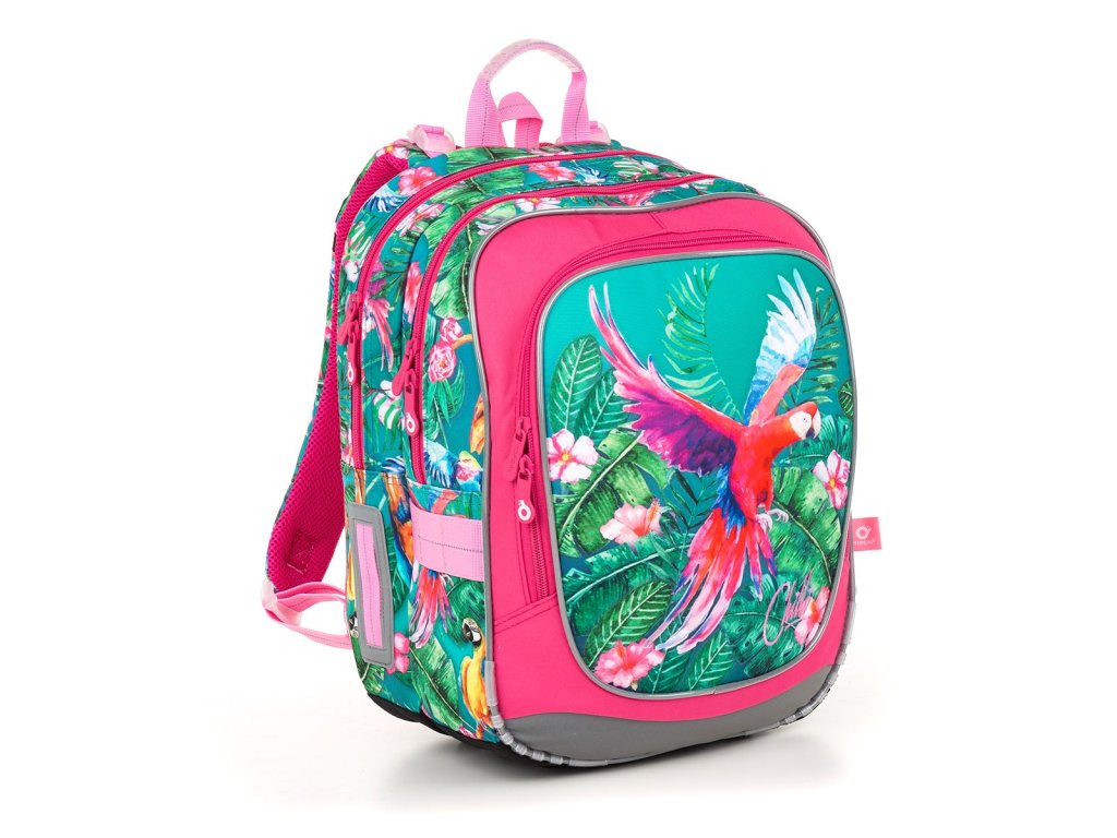 Konštrukcia tašky je vďaka lisovanému chrbtu odľahčená, preto ju môžeme odporučiť aj pre drobné slečny. Objemom určite vydržia najmenej od prvej do tretej triedy. Z chrbta padať nebude, nebojte, ramenné popruhy totiž môžete utiahnuť v ich hornej ako aj spodnej časti a navyše ich zaistíte ešte hrudnou prackou. Konce popruhov sú opatrené magnetkami, takže ich môžete pripnúť k ramenným popruhom aby neviali okolo tela.