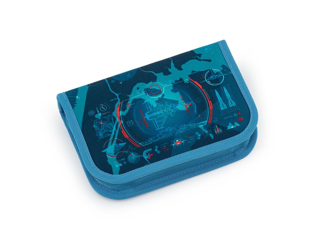 Jednokomorové školské puzdro s dvoma chlopňami je vybavené 21 klasickými gumovými úchytmi na pastelky a fixky, troma širšími úchytmi na pravítka, kružidlo či nožnice, a dvoma väčšími úchytmi na gumu a strúhadlo. Pod chlopňou z priehľadnej fólie nájdete rozvrh hodín ale poslúži napríklad aj na ťaháky ;-)