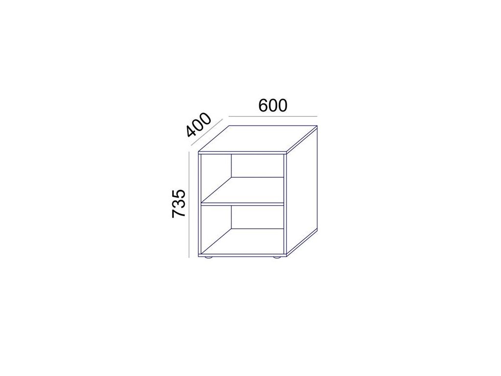 Úložný prvok má výšku rovnakú ako písacie stoly, otvorená s jednou poličkou.