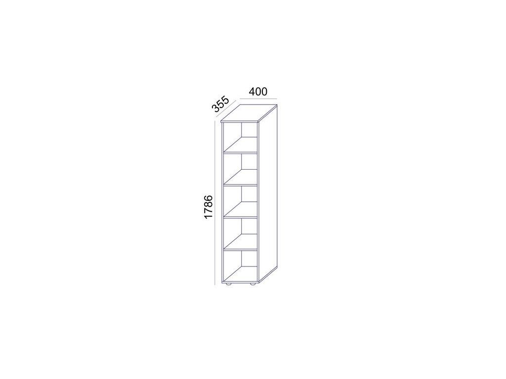 Policová skriňa, výška na 5 zakladačov.Rozmery: 1786 x 400 x 355 mm.