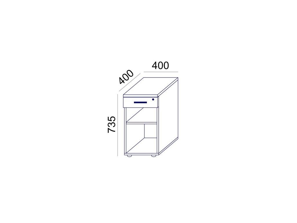 Úložný prvok má výšku rovnakú ako písacie stoly, s jednou drevenou zásuvkou a jednou poličkou.Rozmery: 73,5 x 40 x 40 cm.