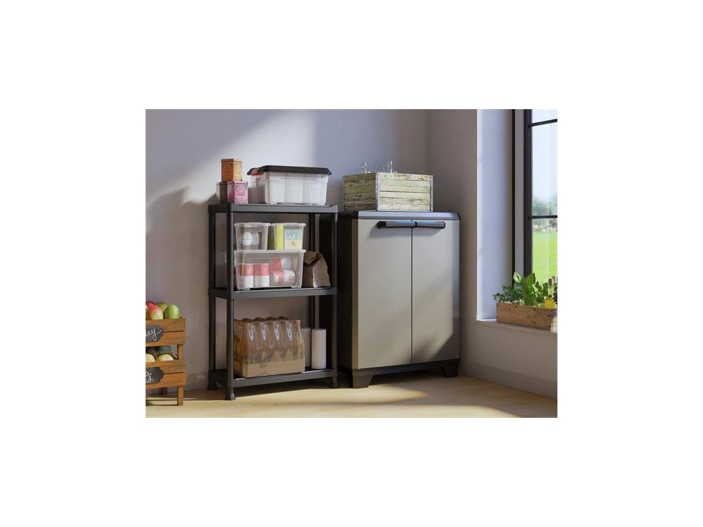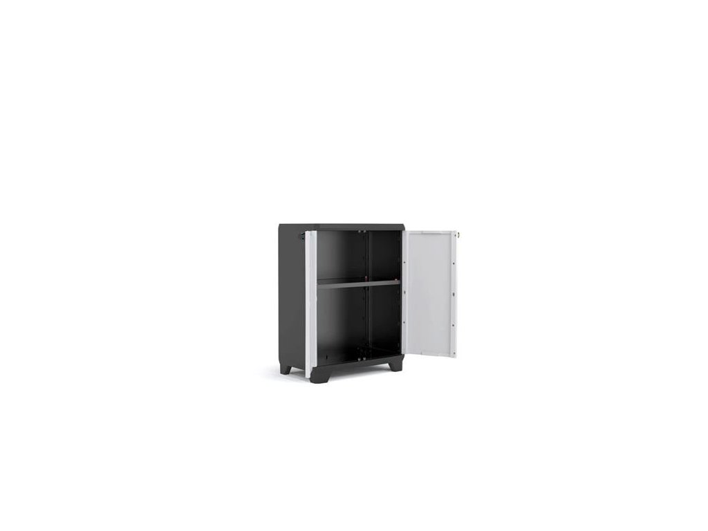 Odolná plastová skriňa vhodná do garáže, na chatu, na terasu alebo do pivnince. - jednoduchá montáž a údržba - dvere uzamykateľné visiacim zámkom (nie je súčasťou balenia) - 1 nastaviteľná polica s nosnosťou 15 kg - nastaviteľné nôžky - s certifikátom TUV GS -rozmery skrine: 68x39x90 cm (šírka x hĺbka x výška) - rozmery políc: 63x33 cm - celková hmotnosť: 7,5 kgDodatočné parametre