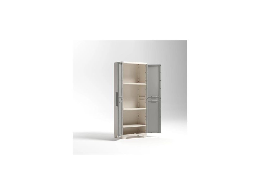 Odolná plastová skriňa KETER Linear Wood ponúka moderný dizajn a praktické úložné riešenia. Svetlobéžová a žltá farba evokuje prírodné drevo, esteticky sa hodí do každého priestoru. - jednoduchá montáž a údržba - dvere uzamykateľné visiacim zámkom (nie je súčasťou balenia) - 3 nastaviteľné police s nosnosťou 15 kg/polica - nastaviteľné nôžky - s certifikátom TUV GS -rozmery skrine: 68x39x173 cm (šírka x hĺbka x výška) - rozmery políc: 63x33 cm - celková hmotnosť: 11,08 kgDodatočné parametre