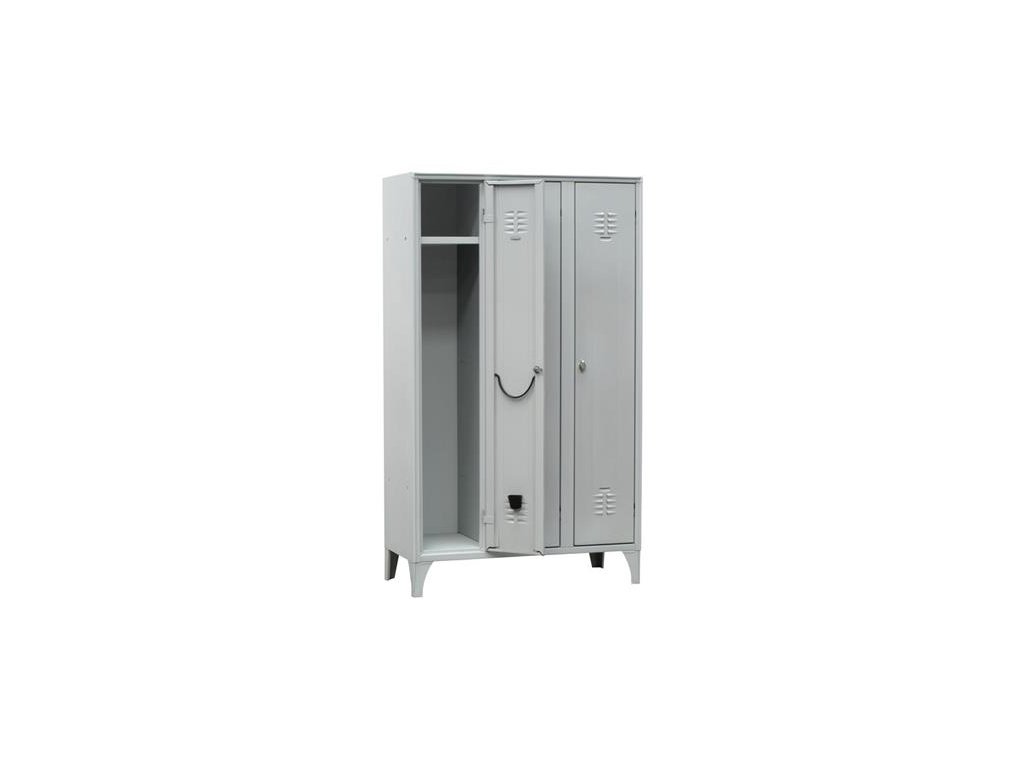 oceľová skrinka sivej farby, bezpečnostný zámok s 2 kľúčmi, tyč na vešiaky, s policou jedným vešiakom, držiak na uterák aj dáždnik (UMH4), vetranie je zabezpečené vetrákmi, miesto na štítok, 15 cm nohy alebo plný podstavec, šírka priečinkov: 30 cmDodatočné parametre