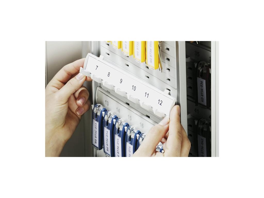 Vďaka číselnému uzamykaniu skrinky môžete mať svoje kľúče v bezpečí. Ideálne pre miesta, kde má prístup k kľúčom viac ľudí. - zmenu kódu je možné nastaviť rýchlym a ľahkým postupom, ktorý nevyžaduje ďalšie nástroje - kľúče sú pohodlne prístupné vďaka veľkému otváraniu dverí - výška vešiakov na kľúče je nastaviteľná - index na zadnej strane dverí umožňuje rýchly prehľad o obsahu skrinky s kľúčmi - rozširujúci set je možné zakúpiť samostatne - štítok je možné stiahnuť zadarmo - s príslušenstvom na montáž - Obsahuje 6 kľúčeniek v rôznych farbáchDodatočné parametre