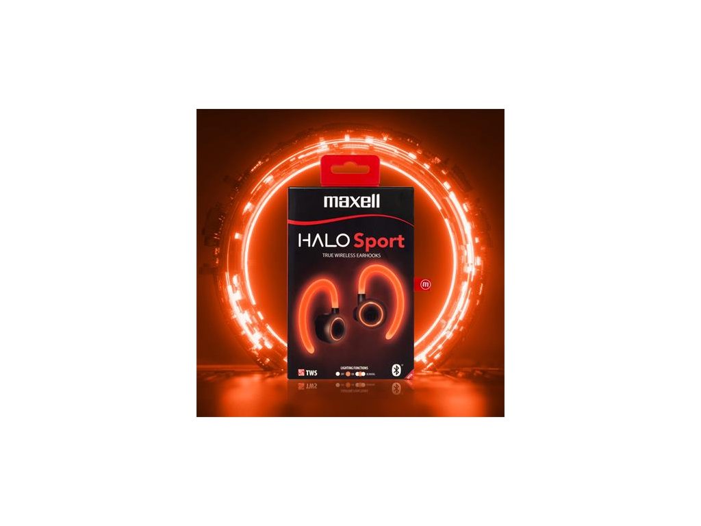Slúchadlá, bezdrôtové, Bluetooth, s mikrofónom, LED slúchadlá, MAXELL "Halo Sport", čierna