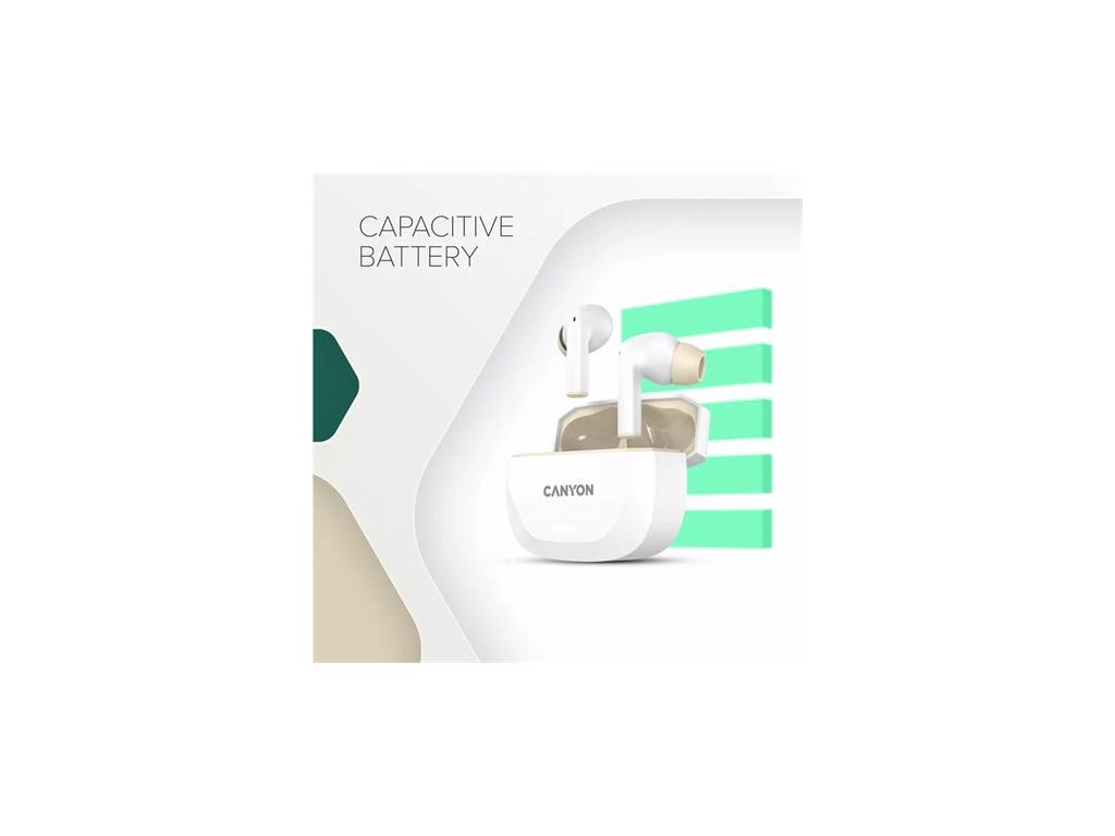 Slúchadlá, TWS bezdrôtové, Bluetooth 5.4, CANYON „Hexagon 7“, bielo-béžové