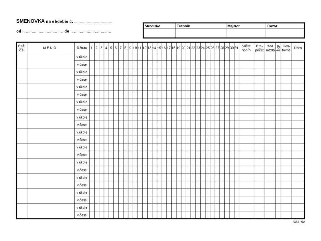 Smenovka na obdobie A4 100 listov