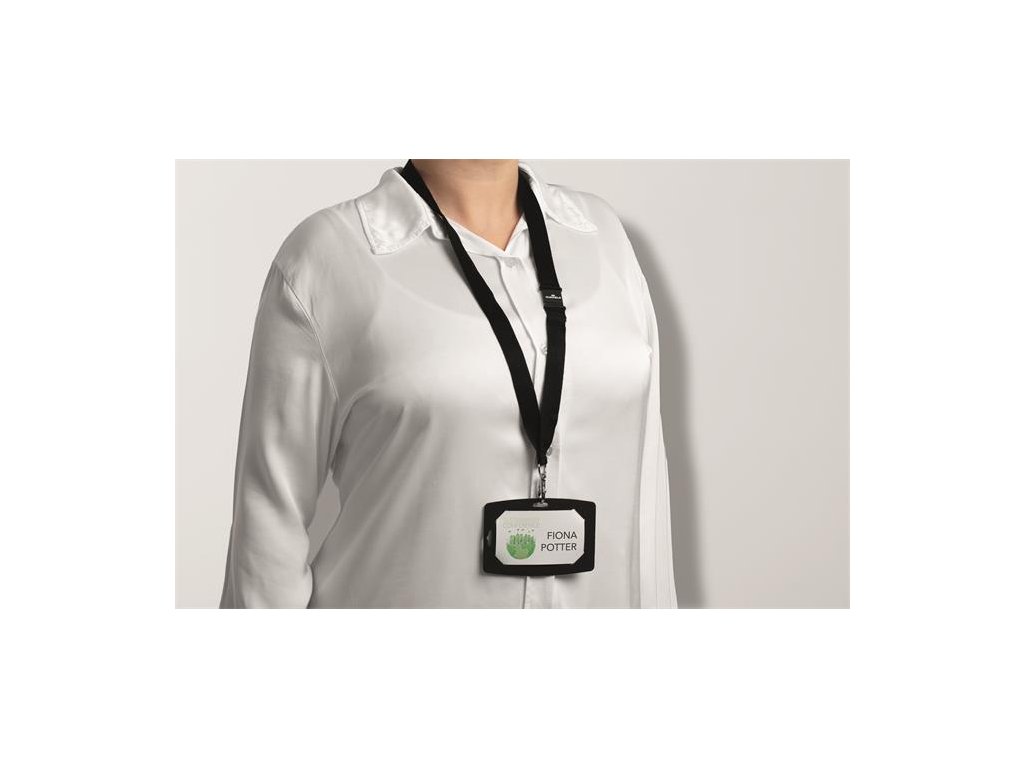 Šnúrka na krk, s karabínou, DURABLE "ECO", čierna