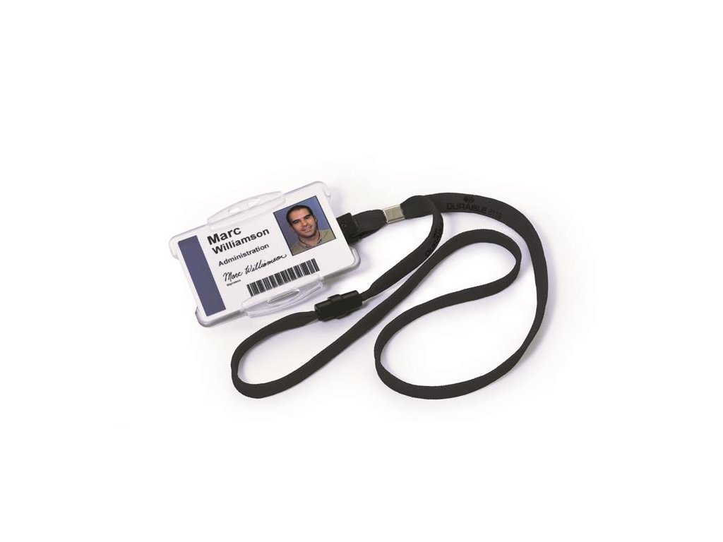 Šnúrka na krk, s klipom, DURABLE, čierna