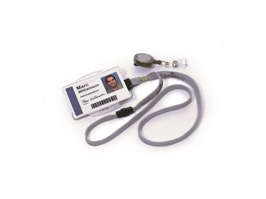 Šnúrka na krk, s klipom, DURABLE, sivá