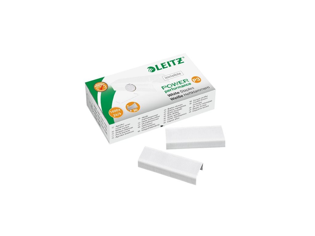 Biele prevedenie spiniek umožňuje jednoduché kopírovanie bez toho, aby bolo nutné dokument otvoriť, pretože spinka nie je na kópii vidieť. Kvalitné oceľové spinky 24/6. Najoptimálnejší výkon pri použití v Leitz zošívačkách. max. kapacita zošívanie: 30 listov (80 g) Značka: LEITZ Výrobca: Esselte Kft. Adresa: 1139 Budapest, Lomb u. 37-39. A ép. II. 8., Hungary Web: https://www.accobrands.com/brands/ Email: hungarymarketing@acco.comDodatočné parametre