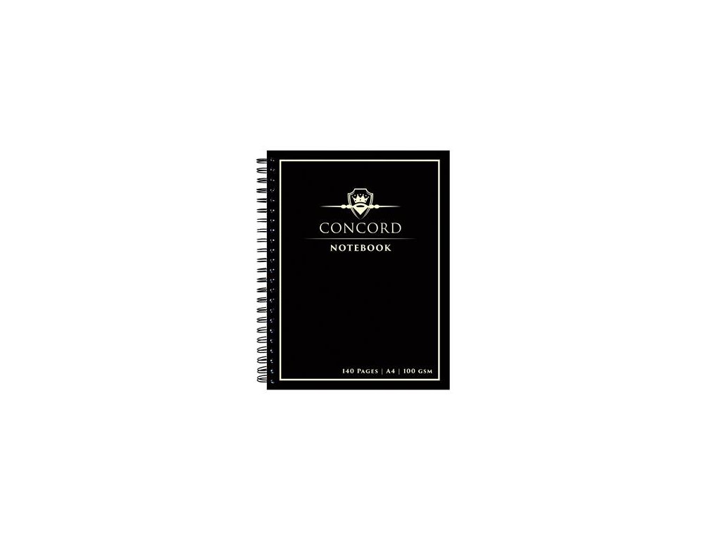 Špirálový zošit, A4, linajkový, 70 listov, CONCORD, čierny