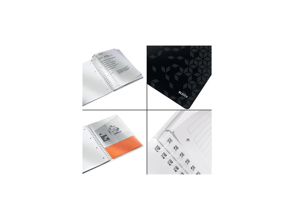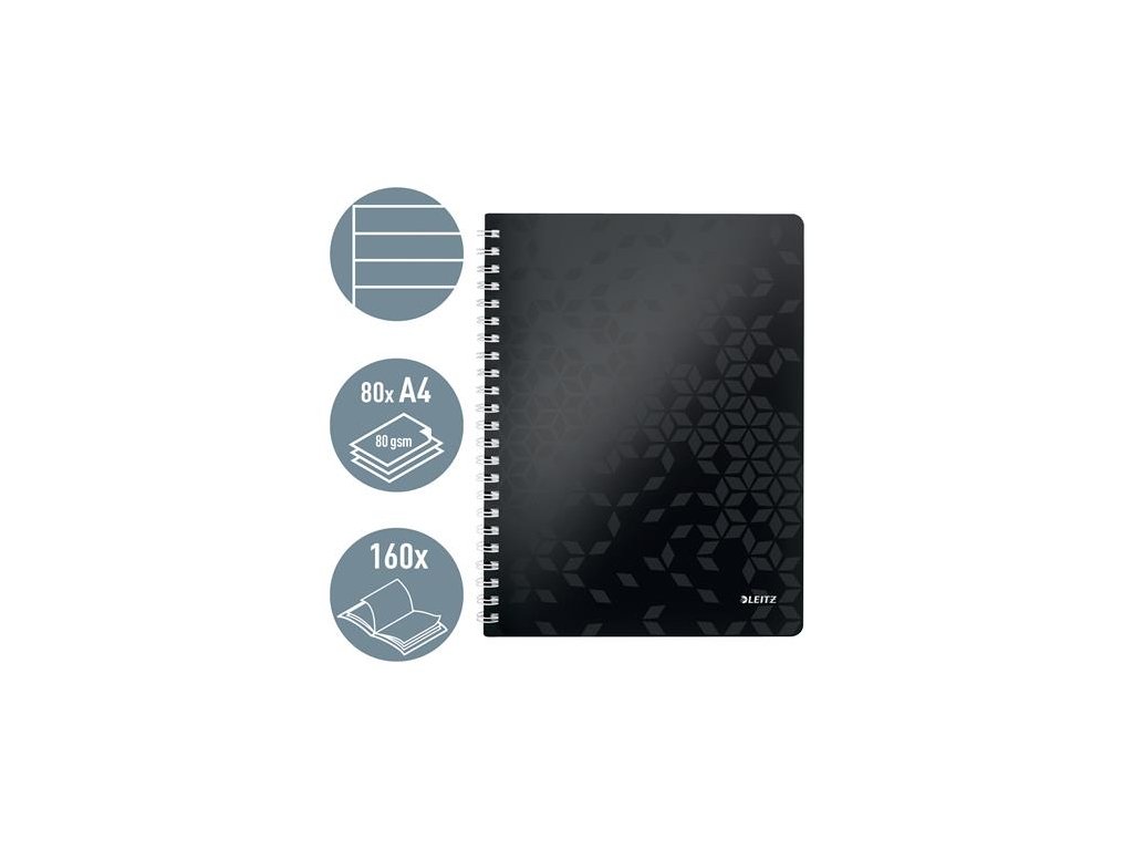 Špirálový zošit, A4, linajkový, 80 listov, LEITZ "Wow", čierna