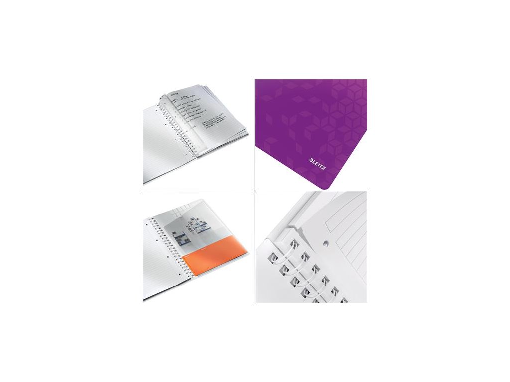 Špirálový zošit, A4, linajkový, 80 listov, LEITZ "Wow", fialový