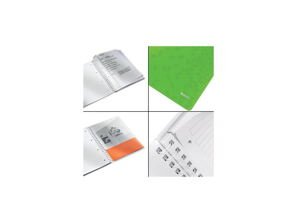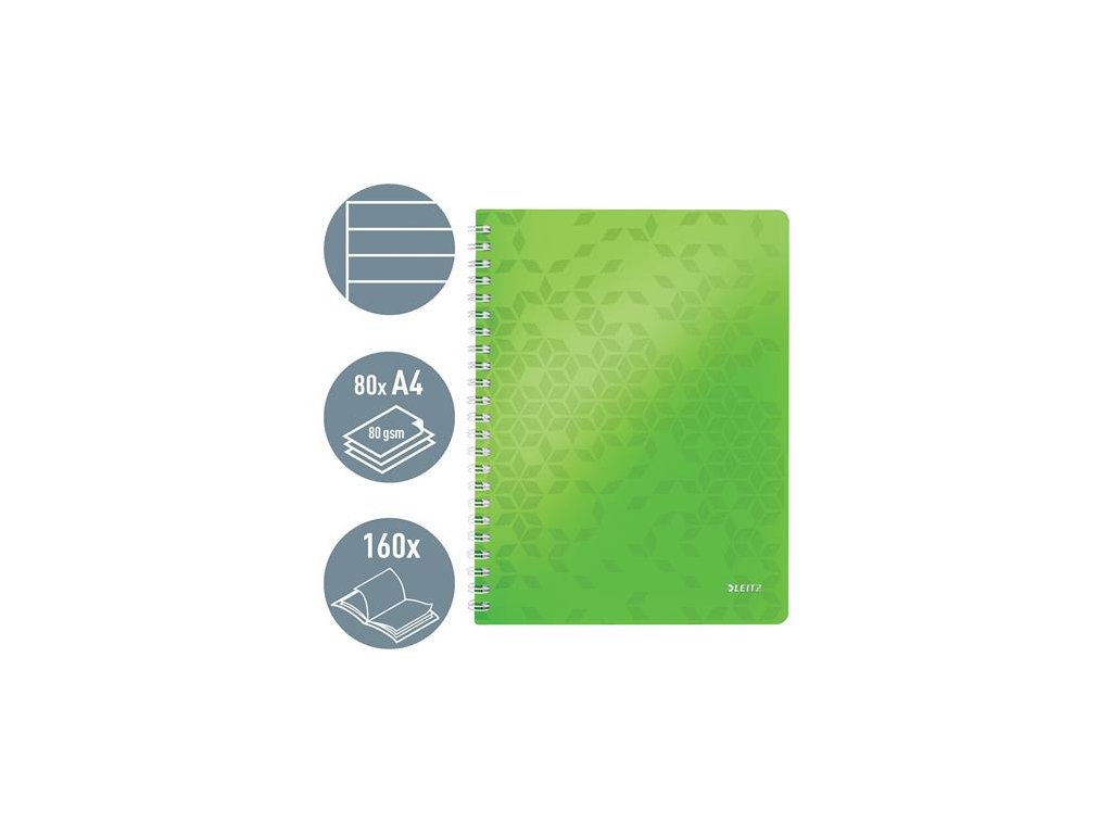 Špirálový zošit, A4, linajkový, 80 listov, LEITZ "Wow", zelená