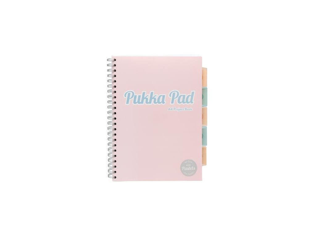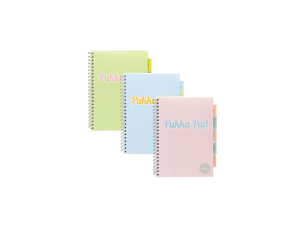 Špirálový zošit, A4, linkovaný, 100 listov, PUKKA PAD "Pastel project book", mix farieb