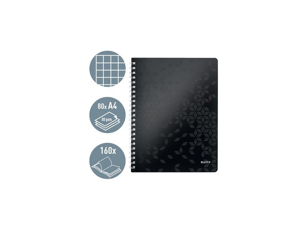 Špirálový zošit, A4, štvorčekový, 80 listov, LEITZ "Wow", čierna