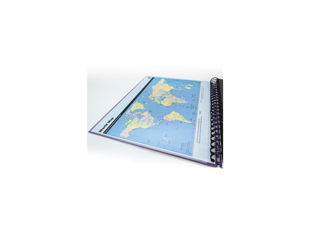 tvrdá obálka dvojitá špirála 5 ks premiestniteľných farebných registrov s vreckom uzatváranie pomocou gumičky mikroperforované listy dierkované 1 strana pre poznámky s mapou sveta 80 g/m2 papier mix farieb, farba sa nedá vybraťDodatočné parametre