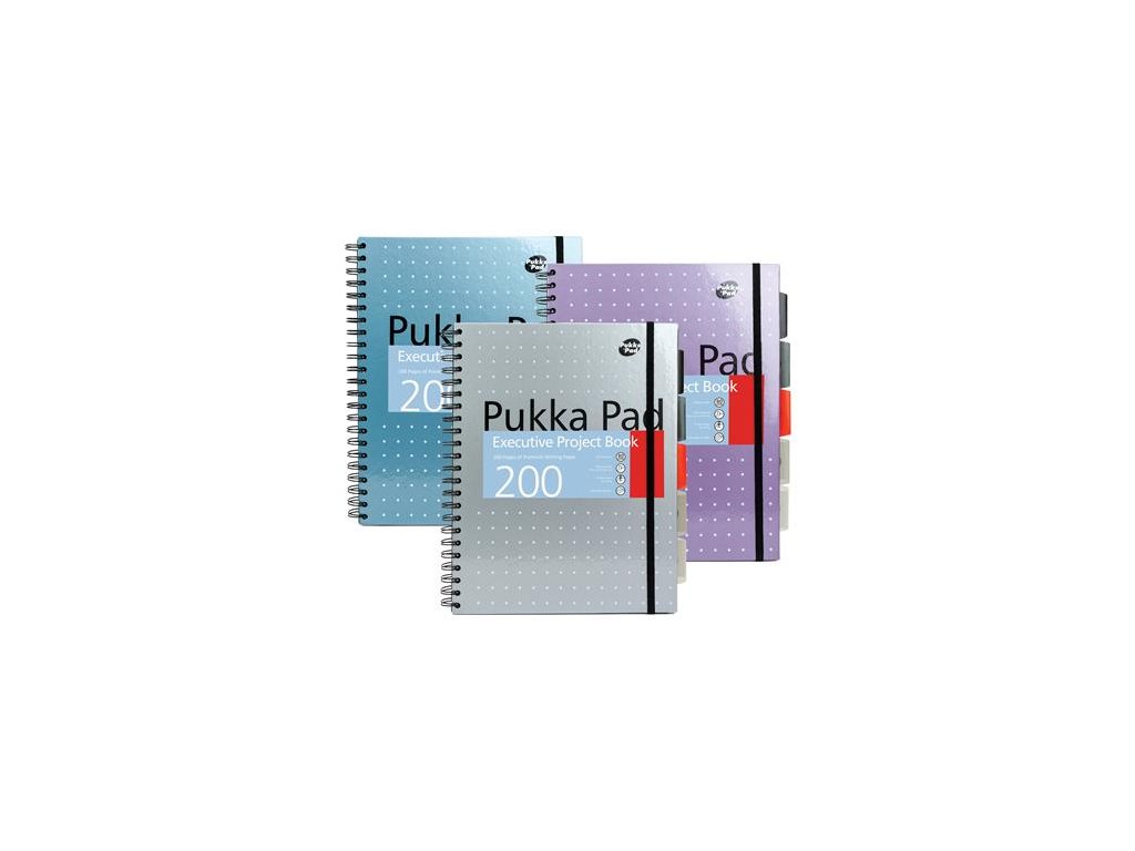 Špirálový zošit, A4+, linajkový, 100 listov, PUKKA PAD "Metallic Project Book", mix farieb