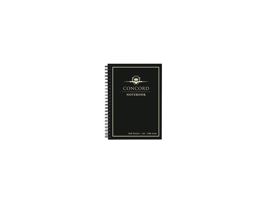 Špirálový zošit, A5, linajkový, 70 listov, CONCORD, čierny