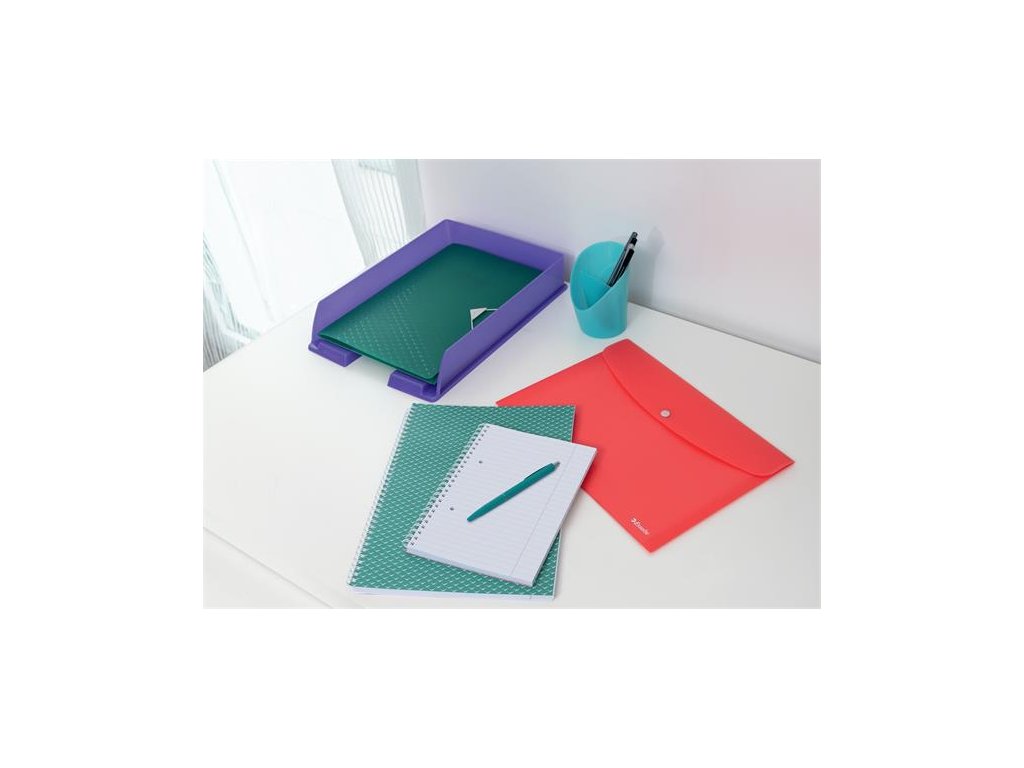 štýlový zošit pre každodenné poznámky doma, v škole alebo v práci živé farby prírody pre vytvorenie pozitívneho pracovného priestora 80 listov 80 g/m2 papier s certifikátom FSC listy s povrchom odolným proti rozmazávaniu atramentu klasické linajkovanie s pomocnou čiarou pre poznámky mikroperforované a dierkované listy, ktoré sa dajú rýchlo odstrániť zo zošita a odkladať do šanónov obálka z odolného kartónu s modernou embosovanou potlačou s kovovým leskom Colour'Breeze Značka: ESSELTE Výrobca: Esselte Kft. Adresa: 1139 Budapest, Lomb u. 37-39. A ép. II. 8., Hungary Web: https://www.accobrands.com/brands/ Email: hungarymarketing@acco.comDodatočné parametre