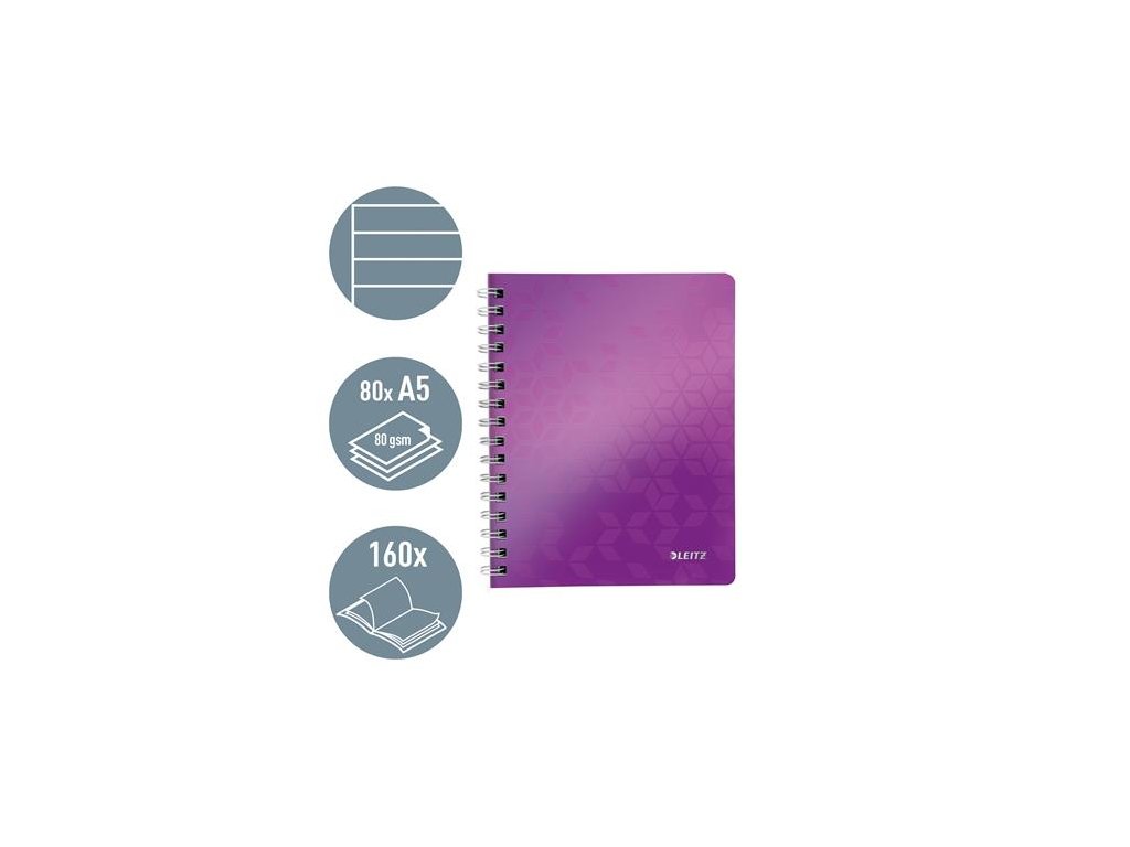 Špirálový zošit, A5, linajkový, 80 listov, LEITZ "Wow", fialová