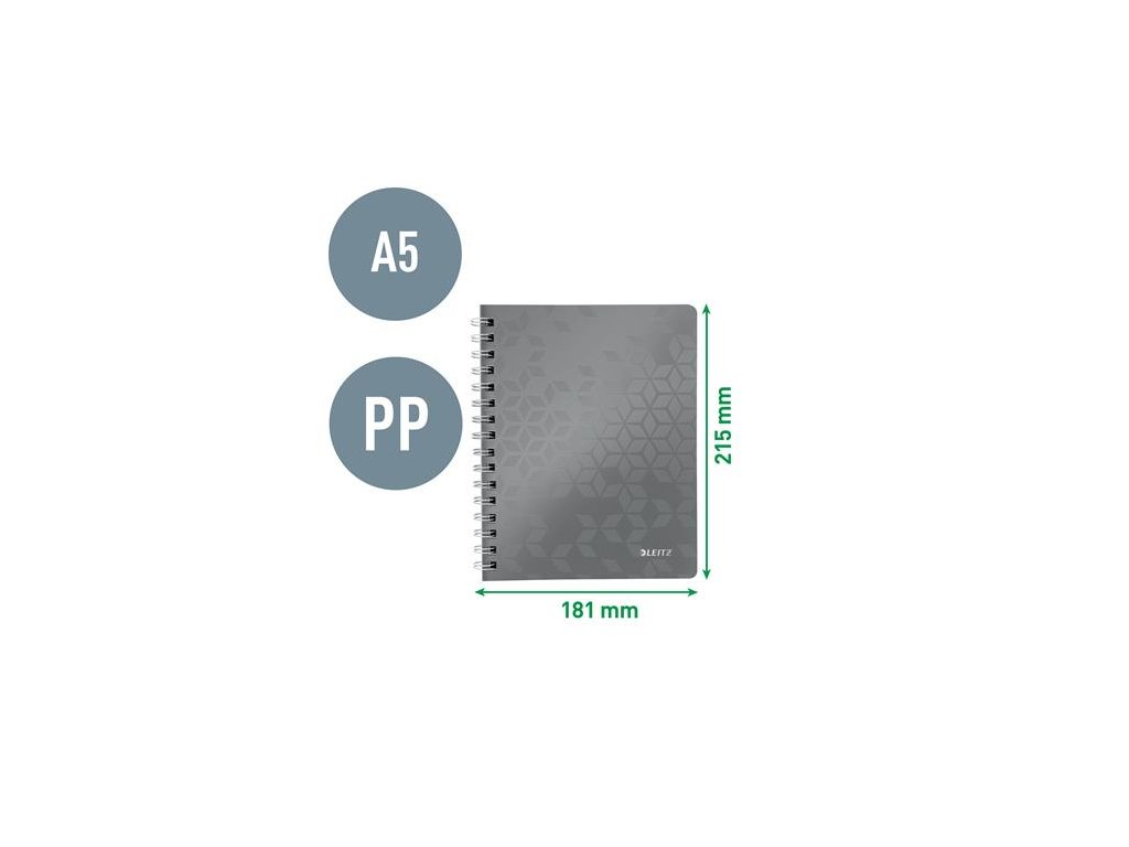 Špirálový zošit, A5, linajkový, 80 listov, LEITZ "Wow", zelená