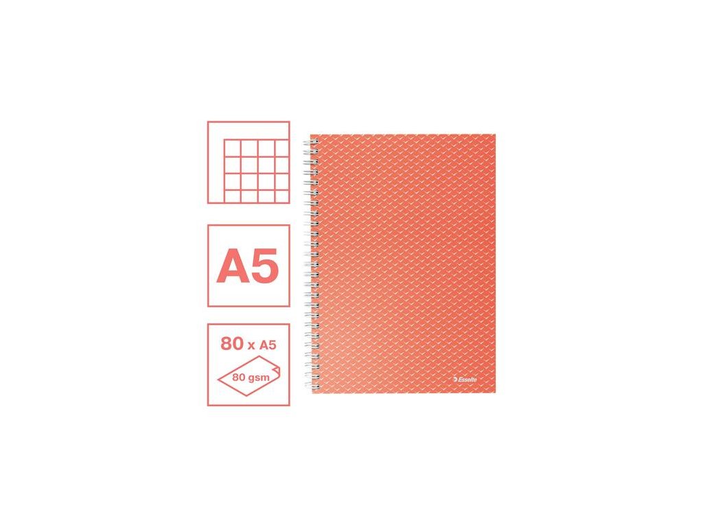 Špirálový zošit, A5, štvorčekový, 80 listov, ESSELTE "Colour`Breeze", koralová