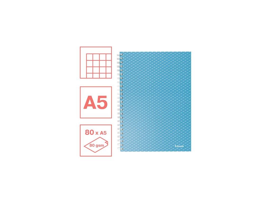špirálový zošit, A5, štvorčekový, 80 listov, ESSELTE "Colour`Breeze", modrá