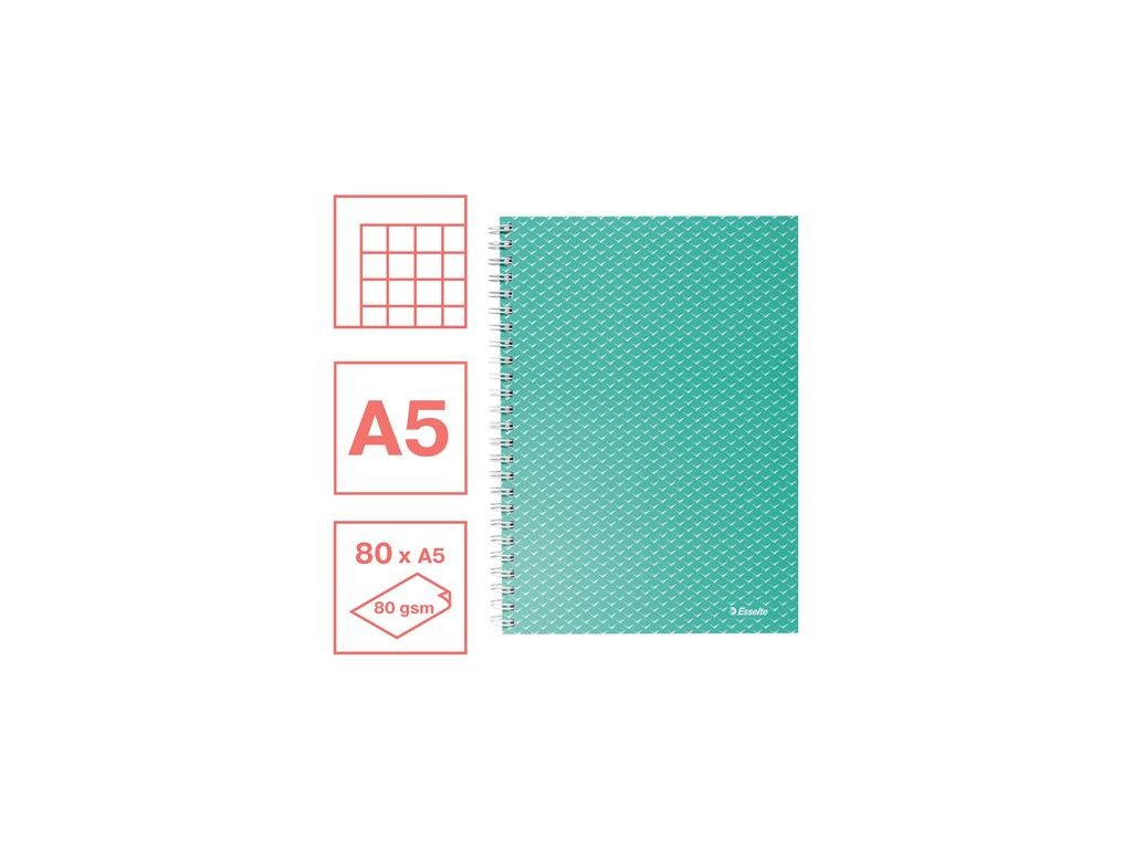 Špirálový zošit, A5, štvorčekový, 80 listov, ESSELTE "Colour`Breeze", zelená