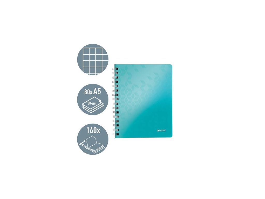 Špirálový zošit, A5, štvorčekový, 80 listov, LEITZ "Wow", ladovo modrý