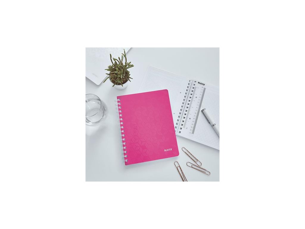 Špirálový zošit, A5, štvorčekový, 80 listov, LEITZ "Wow", ružový