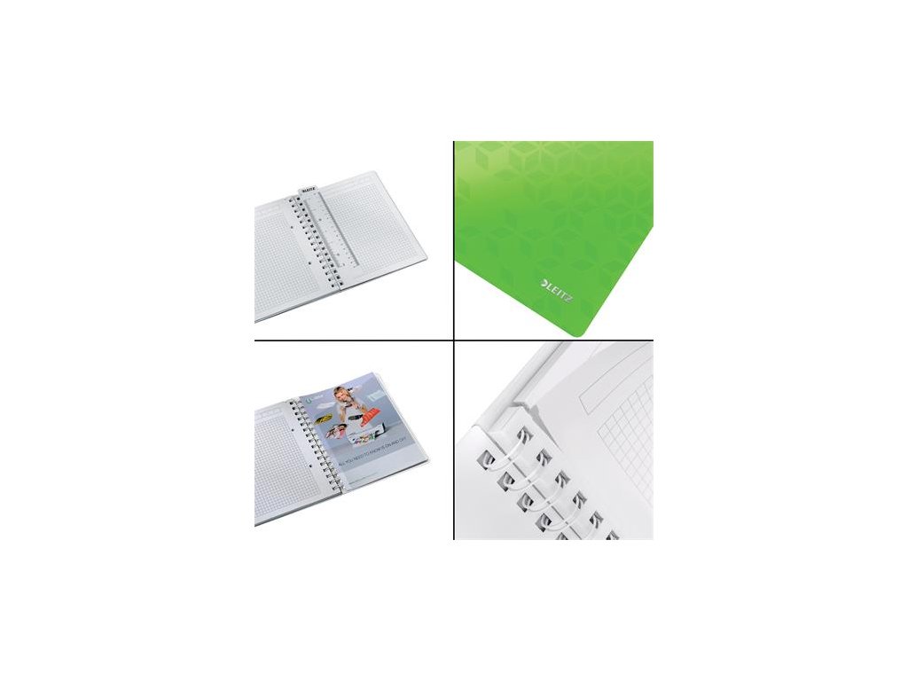 Špirálový zošit, A5, štvorčekový, 80 listov, LEITZ "Wow", zelená