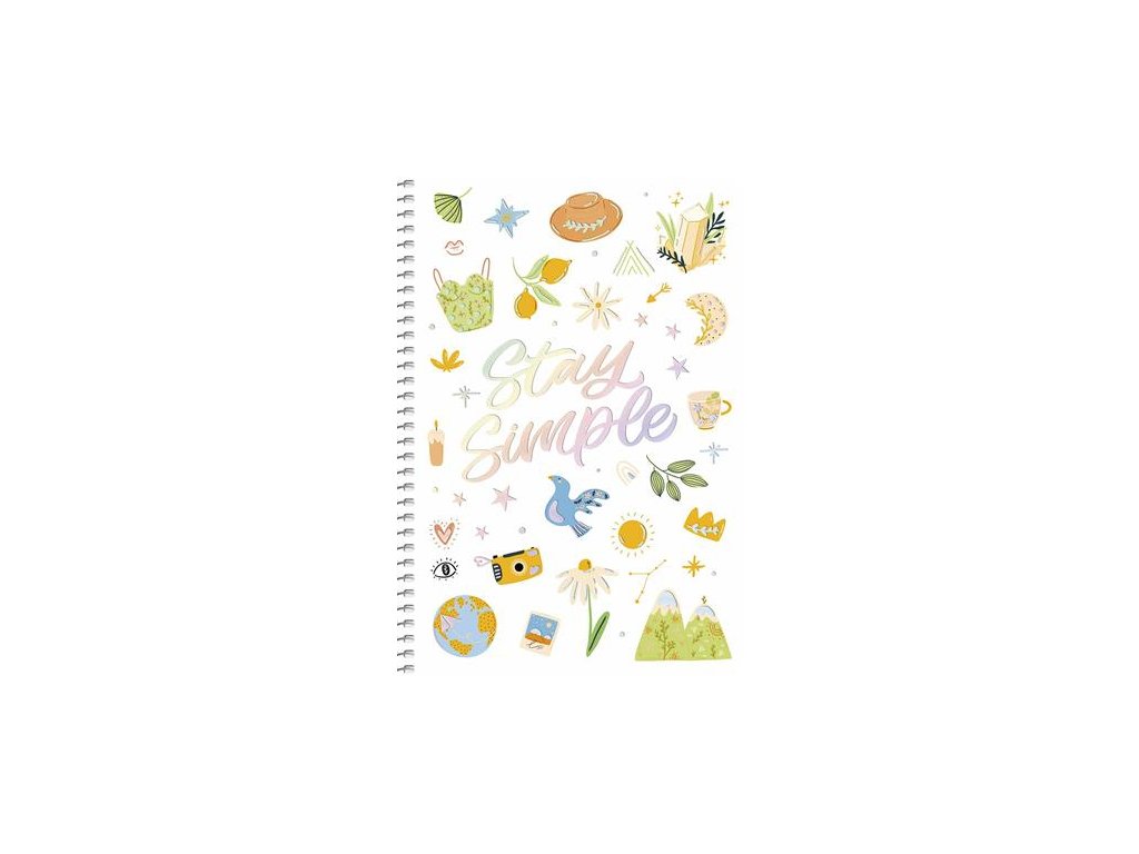 Špirálový zošit, štvorčekový, A5, 80 listov, tvrdá obálka, SHKOLYARYK „Stay simple”, mix