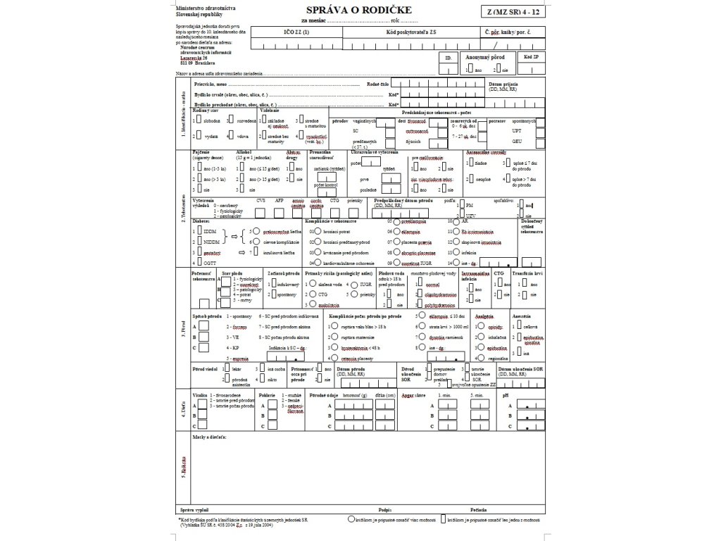 Správa o rodičke A4 4list Z(MZ SR) 4-12