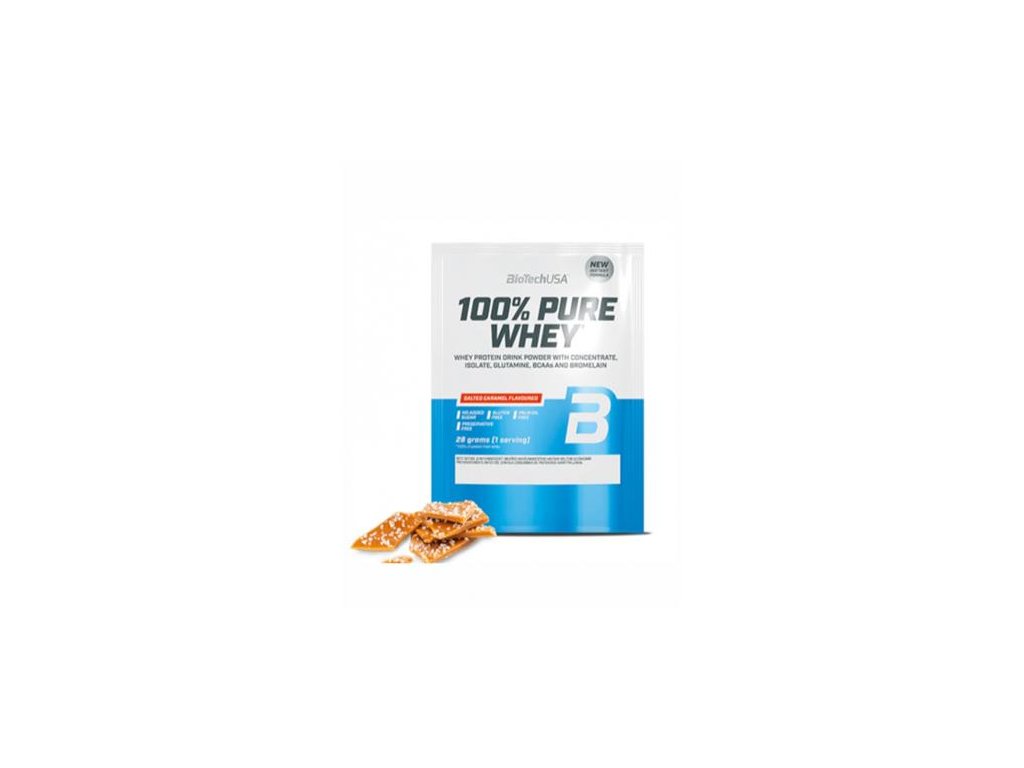 Srvátkový proteínový prášok, 28g, BIOTECH USA "100% Pure Whey", slaný karamel