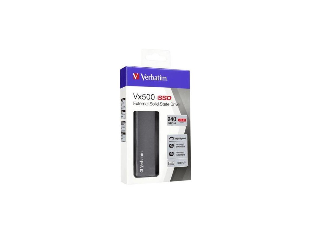 SSD (externá pamäť) 240 GB, USB 3.2 Gen2, VERBATIM "Vx500", sivá
